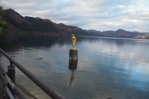 たつ子像なるものが 湖に立ってました