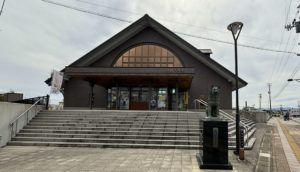 秋田犬の里は、JR大館駅のそばにあります。そして、駅の向かいに見つけました。