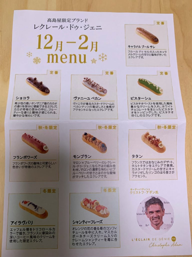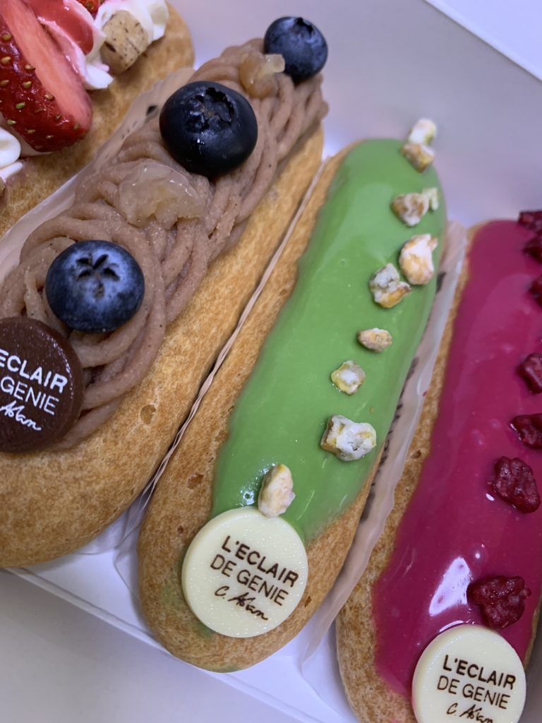 先日 手土産を買いにデパートへ行った 包装してもらってる間にそこで売ってたエクレアを見てたら どーも美味しそうで 買うつもりなかったのに 誘惑に負けて買ってしまった レクレール ドゥ ジェニ 男前のフランスのシェフが作ったエクレア なんでも日本ではタカシマヤでしか買えないみたい 限定に弱いワタシ でこれ
