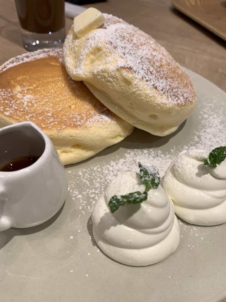 今日は スタンダードに クラシックパンケーキ しかも ダブルホイップ